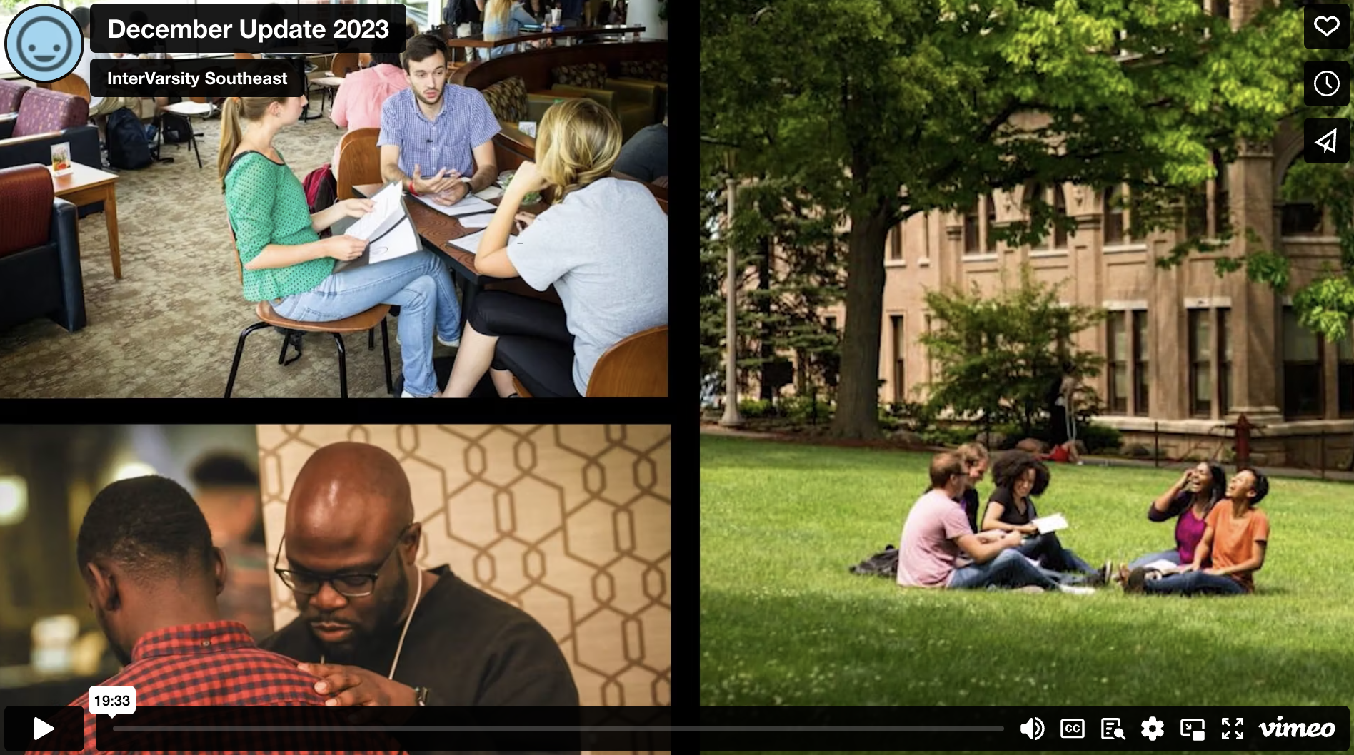 The story of God is forever continuing until we see Jesus in his full glory. We see glimpses of that full glory in our stories of following God on campus. Enjoy these candid stories from campus told by staff in InterVarsity’s the Southeast region.